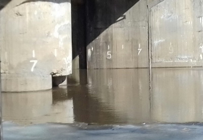 Уровень воды в Протве составляет 4,4м и 4,6м ниже и выше плотины соответственно.