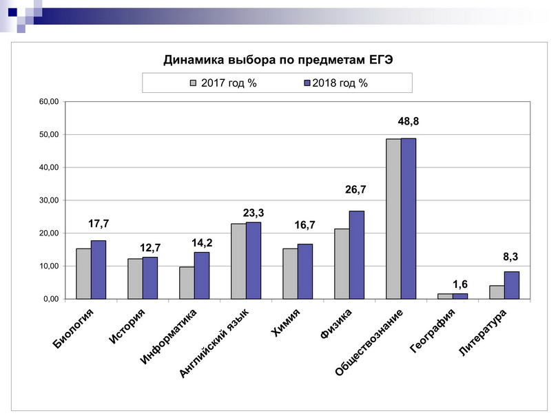 Что касается предметов по выбору, большинство обучающихся, по традиции, сдавали обществознание, также увеличилось количество ребят, которые сдавали предметы естественнонаучного цикла (химию, физику, биологию) и информатику.