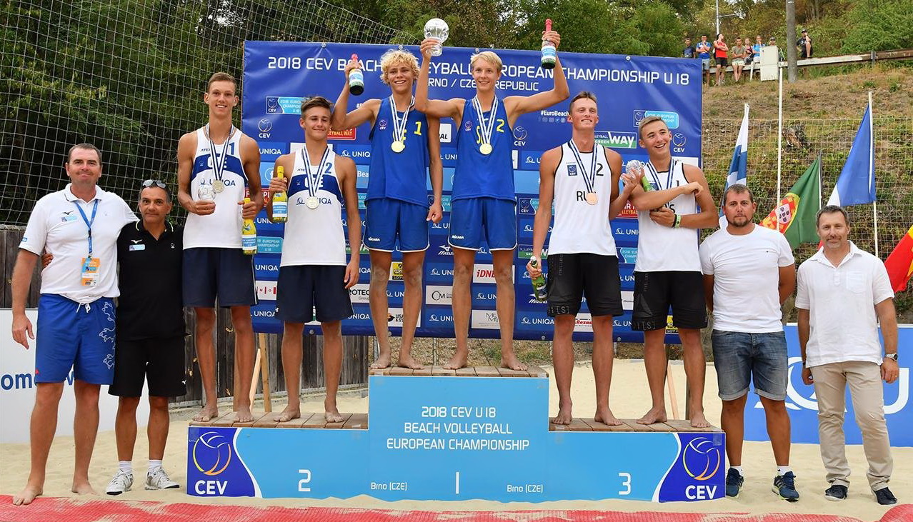 В Брно (Чехия) на юниорском (U-18) чемпионате Европы по пляжному волейболу (игроки не старше 2001 года рождения) наши пары добились призовых мест на пьедестале в мужском и женском турнире.