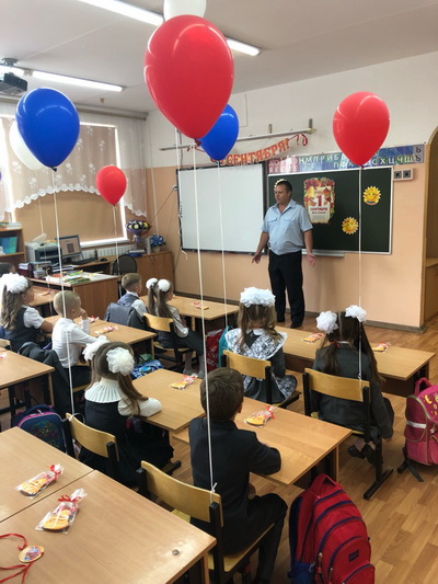 1 сентября в гостях у первоклашек школы №16 с открытым уроком побывал начальник МРЭО ГИБДД майор полиции Андрей Холостенко.