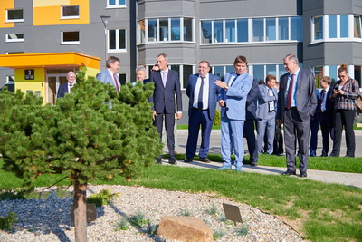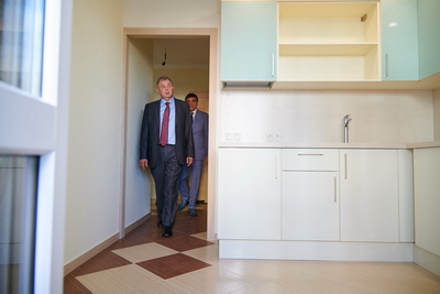 Затем состоялась церемония разрезания ленточки, после чего гости осмотрели квартиры в новых домах.