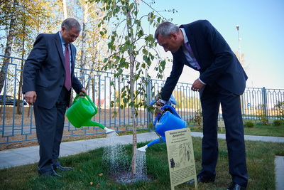 Частью церемонии стал также полив деревьев Аллеи русско-белорусской дружбы из белоствольных берез «Дооренбос», высаженных в прошлом году. Дмитрий Музычак с гордостью отметил, что все деревья прижились, как и все растения дендропарка.