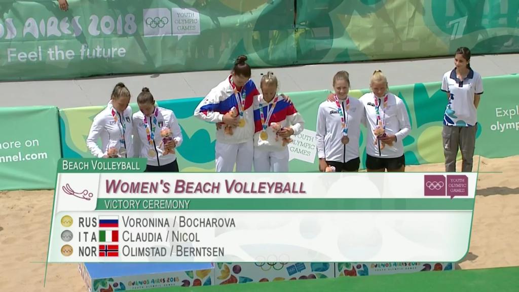 17 октября в Буэнос-Айресе (Аргентина) завершился финальный матч турнира по пляжному волейболу в рамках юношеской Олимпиады. Мария Бочарова и Мария Воронина завоевали золотые награды, в двух сетах переиграв соперниц из Италии.