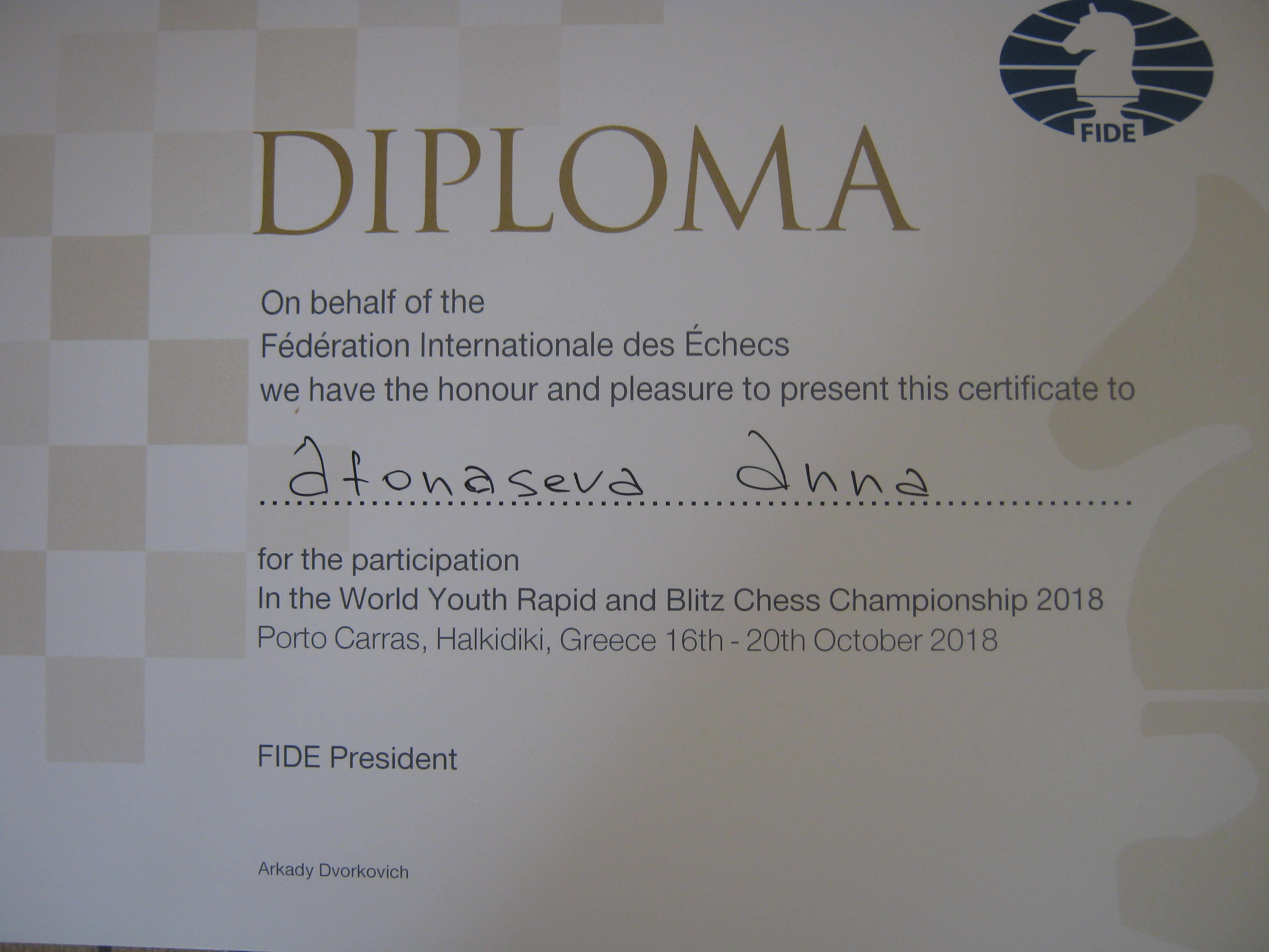 С 17 по 30 октября в Порто-Каррасе (о.Халкидики, Греция) проходили первенства мира среди юношей и девушек до 14, 16 и 18 лет по рапиду, блицу и классическим шахматам.