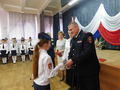 О важности кадетского движения и его роли в обществе было сказано много слов от директора лицея Ирины Строевой и почетных гостей. Поздравить ребят из нового кадетского класса с долгожданным событием пришли представители Аминистрации города, начальник ОМВД России по г. Обнинску Сергей Воронежский, заместитель начальника ОМВД Юрий Хрипунов и начальник отдела по работе с личным составом Ольга Неказакова, председатель Совета ветеранов Гимзер Дзадзамия. С напутственной речью и словами поздравления выступили члены Общественного Совета протоирей Сергий Вишняков и Дмитрий Казаков. Началом мероприятия стало построение учащихся и исполнение гимна Российской Федерации. После выноса знамени директор лицея и главный полицейский города вручили кадетам удостоверения и погоны. Учащимся старших кадетских классов были присвоены новые звания и вручены нагрудные знаки.