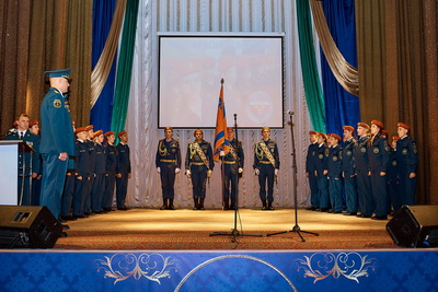 В день торжественного посвящения в кадеты работала тематическая выставка, организованная Специальным управлением ФПС № 84 МЧС России. На выставке были представлены пожарное оборудование и обмундирование прошлого столетия, коллекция шевронов и значков на пожарную тематику, а также выставка картин о героической профессии пожарных, выполненных сотрудниками специальных подразделений пожарной охраны.