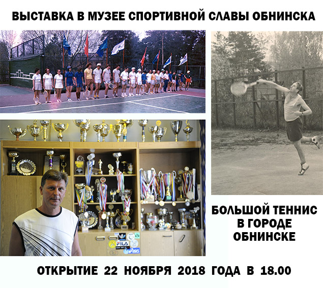 22 ноября состоится открытие выставки «Большой теннис в городе Обнинске». Выставка будет работать в Музее спортивной славы города Обнинска, который расположен во Дворце спорта «Олимп». Горожанам представят спортивные реликвии, фотографии и документы из истории большого тенниса.
