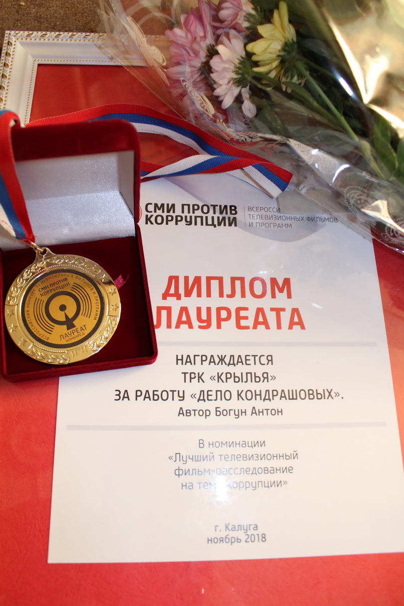 Победа в номинации «Лучший телевизионный фильм-расследование» досталась журналистам НИКА-ТВ. Обнинский тележурналист ТРК «Крылья» Антон Богун получил звание лауреата Всероссийского конкурса за фильм «Дело Кондрашовых» о злоупотреблениях в сфере благотворительности.