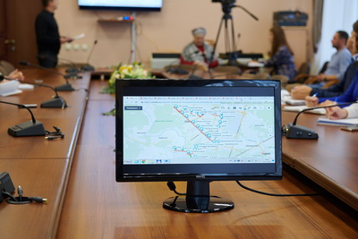 Затем и.о. начальника отдела по организации обеспечения услугами связи, бытового и транспортного обслуживания населения и защиты прав потребителей Анатолий Плеханов провел презентацию оптимизированной схемы движения по каждому из девяти новых маршрутов.