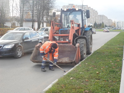 Убрано с газонов вдоль автодорог и вывезено 200 м3 листвы, очищено от мусора 1150 урн, установленных вдоль тротуаров, в скверах и на остановках. На остановках общественного транспорта установлено 22 ящика с песко-соляной смесью.