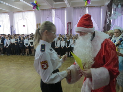 Сотрудники полиции частые гости в лицее, где обучаются несколько кадетских классов. На этот раз в образах сказочных героев с ребятами встретились инспектор ГИБДД Николай Зенин и старший инспектор отдела по делам несовершеннолетних Анна Куракина. Они поздравили детей с наступающими праздниками, пожелали успехов в учебе в новом году, а также напомнили основные правила безопасности, которые необходимо соблюдать в быту, в общественных местах и на проезжей части.