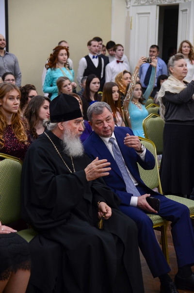 Открыла бал молитва, по окончании которой с приветственным словом ко всем участникам и гостям праздника обратился митрополит. Он пожелал, чтобы молодые люди чаще принимали участие в подобных мероприятиях, помнили и чтили историю Отечества.