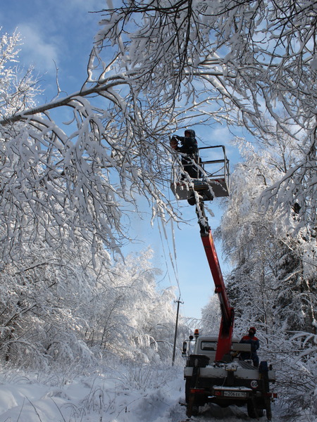 При поступлении информации о технологических нарушениях на энергообъектах к местам повреждения незамедлительно направляются бригады энергетиков, оснащенные всем необходимым оборудованием и снаряжением и высокопроходимой спецтехникой.