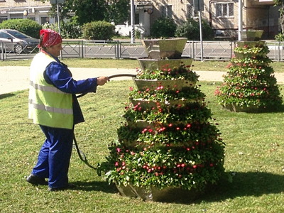 Проводится прополка и полив цветов, кустарников и деревьев на всей территории города.