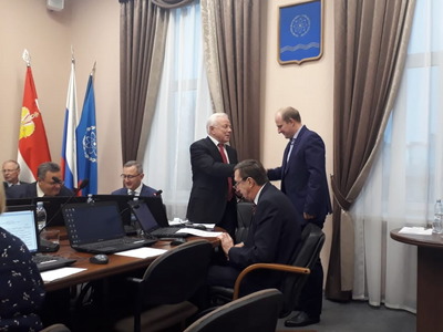 Прежде чем начать заседание, Глава городского самоуправления Владимир Викулин вручил знаки ГТО золотого достоинства депутатам городского Собрания Андрею Зыкову и Вячеславу Нарукову.
