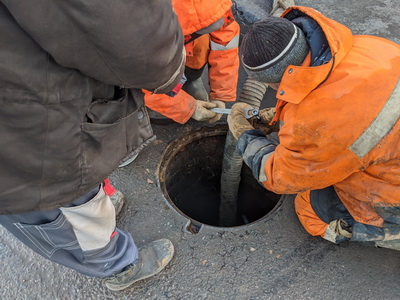 В районе пересечения ул. Курчатова и ул. Мира также произведен аварийный ремонт водопроводной линии диаметром 300 мм.