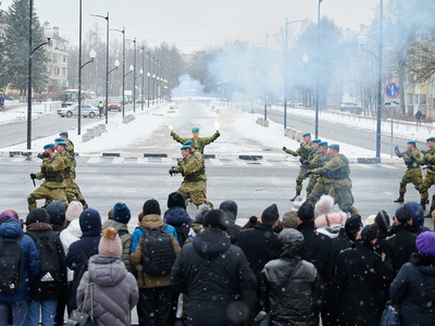 13 февраля участники масштабного марш-броска, посвященного 75-летию Победы в Великой Отечественной войне и 90-летию со дня образования Воздушно-десантных войск, пробежали по Обнинску.