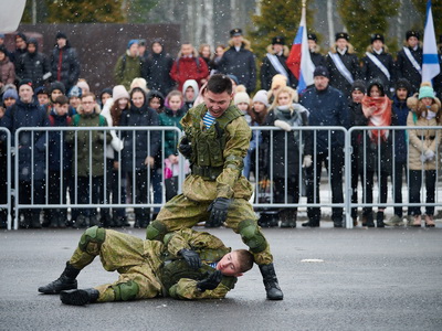 Торжественный митинг завершился возложением цветов к мемориалу «Вечный огонь». После на площадке перед мемориалом прошли показательные выступления по рукопашному бою.