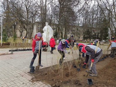 80 кустов декоративной смородины посадили сегодня в сквере Наумова сотрудники МП «Коммунальное хозяйство», комитета по экологии Администрации города и компании «Обнинскоргсинтез».