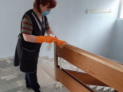 - проводится дополнительная усиленная дезинфекция помещений, перил лестниц, ручек дверей;