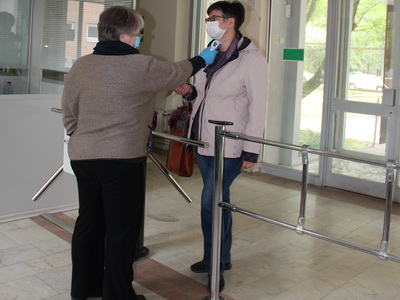 - при входе в здание измеряется температура тела и в случае проявления признаков заболевания сотрудник отстраняется от работы и направляется для консультации врача;