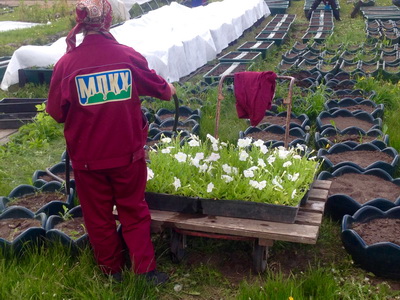 Специалисты зеленого хозяйства МПКХ высадили цветочную рассаду на Северном и Южном въездах в город и подстригли кустарник на проспекте Ленина на отрезке 1970 метров.
