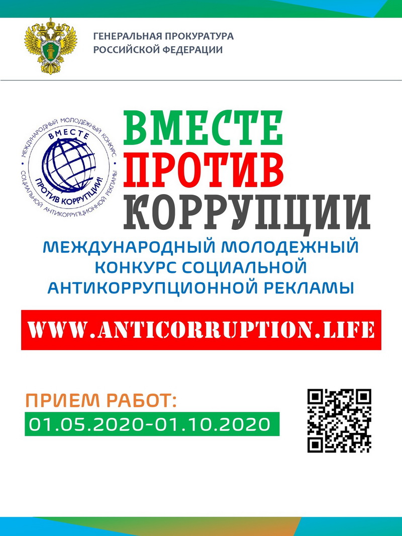 Генеральной прокуратурой Российской Федерации организован Международный молодежный конкурс социальной антикоррупционной рекламы «Вместе против коррупции».