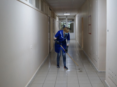 - проводится дополнительная усиленная дезинфекция помещений, перил лестниц, ручек дверей;