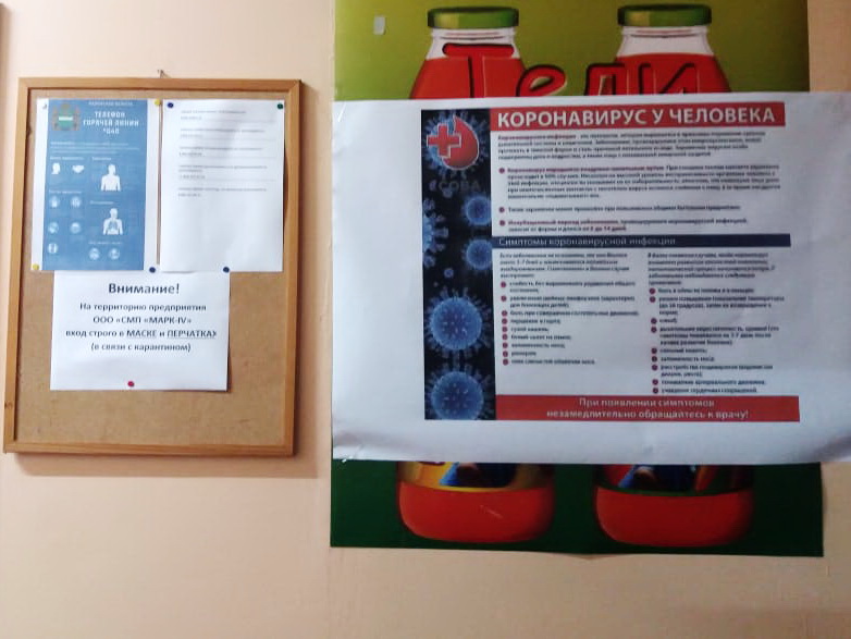 - осуществляется обеспечение сотрудников предприятия одноразовыми масками, одноразовыми перчатками, средствами индивидуальной защиты, дезинфицирующими средствами, кожными антисептиками;