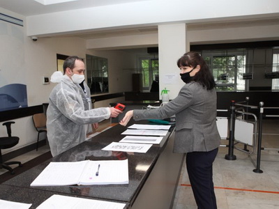 - при входе в здание проводится дезинфекция рук, измеряется температура тела, и в случае проявления признаков заболевания сотрудник отстраняется от работы и направляется для консультации врача;