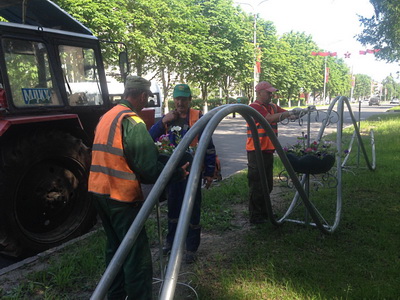 На Треугольной площади и на площади Преображения высажена новая рассада. 30 июня сотрудники службы устанавливали вазоны с рассадой в специальные конструкции на улице Курчатова и высаживали рассаду в клумбы на площади Преображения.
