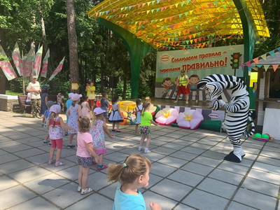Провести время не только весело, но и с пользой смогли все посетители парка. И, конечно, унести с собой большой багаж знаний о соблюдении Правил дорожного движения. Под веселую музыку гостей встречала ростовая кукла Зебра Марти и самая «вредная участница» и ведущая игры Помеха.