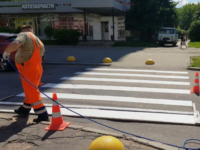 Сотрудники службы безопасности дорожного движения МПКХ нанесли горизонтальную осевую разметку на улицах Курчатова, Дачная, Менделеева и в Пяткинском проезде - общей длиной 7,1 км и покрасили 2 пешеходных перехода на улицах Дачной и Аксёнова.