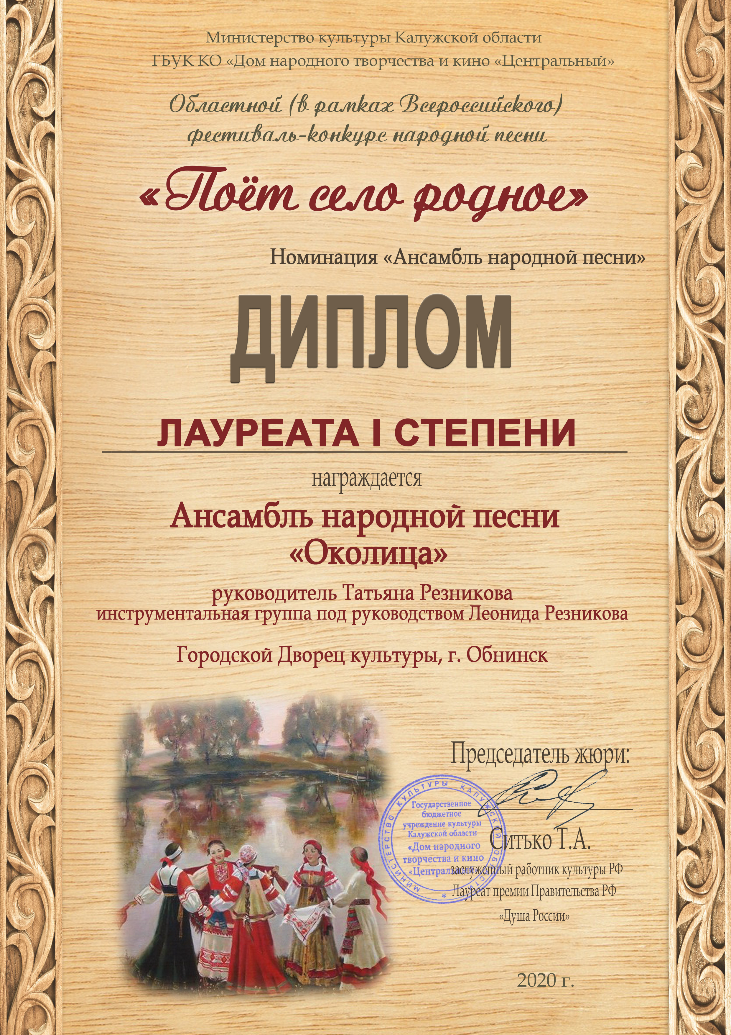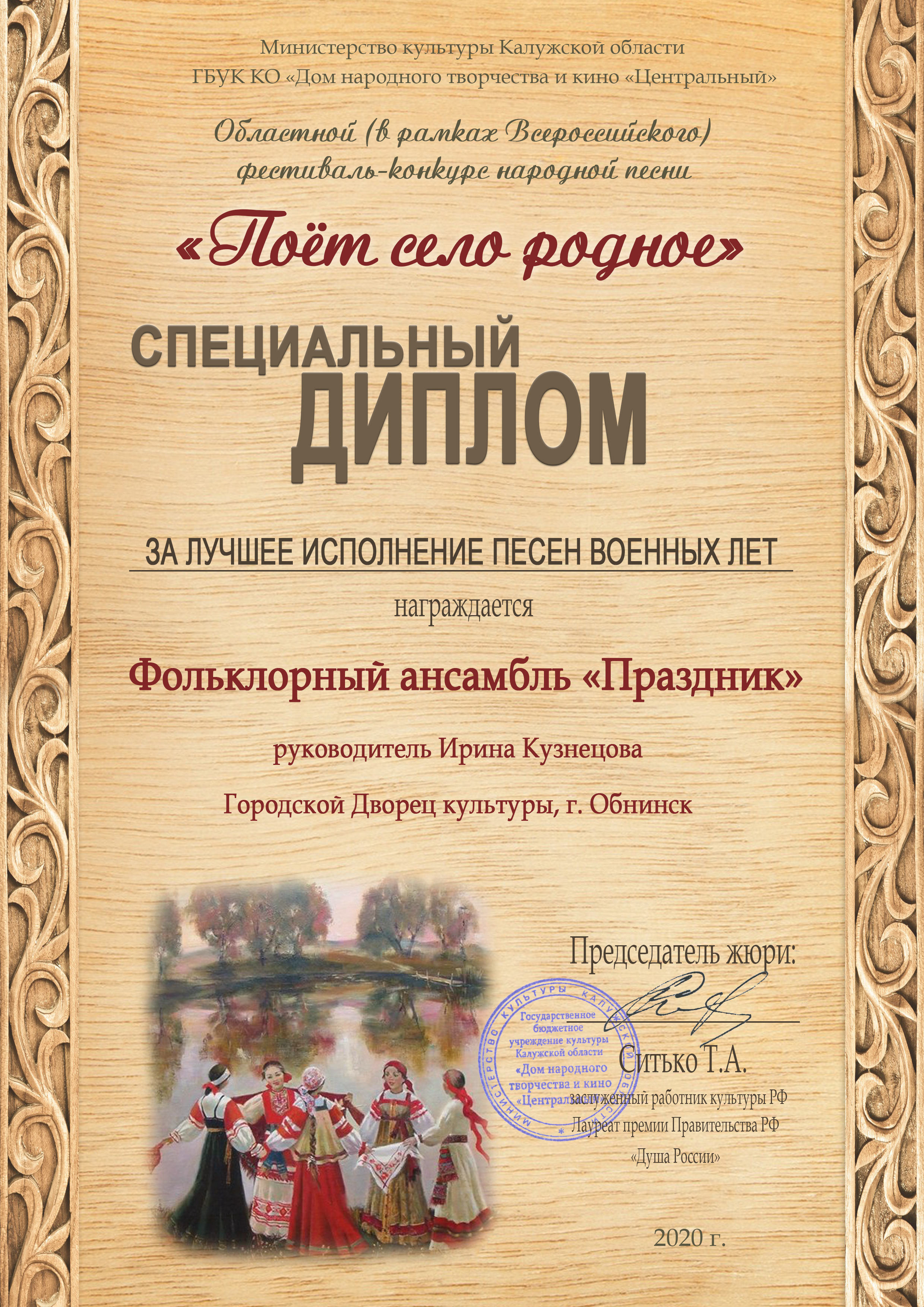 Жюри был отмечен высокий уровень обнинских исполнителей, два коллектива МБУ «ГДК» были награждены по итогам конкурса. Ансамбль народной песни «Околица» (руководитель Татьяна Резникова) стал Лауреатом I степени в номинации «Ансамбль народной песни», а Фольклорный ансамбль «Праздник» (руководитель Ирина Кузнецова) стал Лауреатом I степени в номинации «Фольклорный ансамбль» и получил специальный диплом за лучшее исполнение песен военных лет.