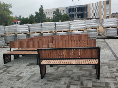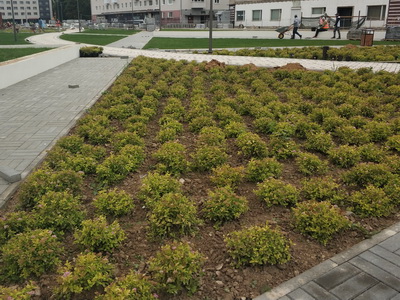 Представитель подрядчика рассказал, что работы по благоустройству близятся к завершению. Мощение дорожек выполнено на 75%, фонтанный комплекс оборудован на 90%. Технические помещения и монтаж оборудования водомерного узла выполнены на 80%. В настоящее время ведется монтаж опор освещения.