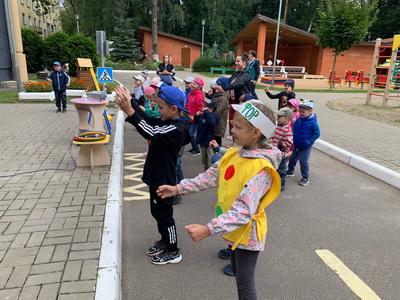 В первом задании одна группа должна была перейти улицу, пользуясь сигналами регулировщика, а другая - переехать улицу в роли водителей. Потом малыши отправились на станцию «Светофор», где каждый собирал цвета светофора в нужном порядке, а в это время другая команда отгадывала загадки про дорожные знаки. В финальном конкурсе команды соревновались в заправке своих автомобилей: на скорость наполняли баки жидкостью.