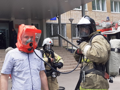 Согласно плану учений, в одном из кабинетов здания произошло возгорание мебели, в связи с чем произошло задымление коридора на 2 этаже. В дежурной части сработала пожарная сигнализация.