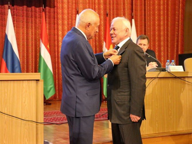 Почетный знак Владимиру Викулину вручил Председатель Законодательного Собрания Калужской области Виктор Бабурин.