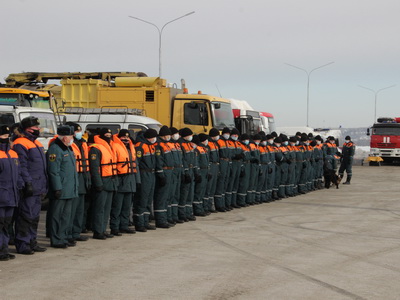 В рамках мероприятия прошла показательная тренировка, в ходе которой спасатели продемонстрировали готовность прийти на помощь тонущим, отработали действия в проведении операции спасения утопающих при помощи устройства для спасения из ледяной полыньи и с аэрохода «Хивус-10».