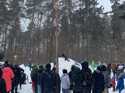 Праздновали с соблюдением традиций и самыми разными развлечениями: катание на тазах, метание валенка, меткий веник, самым сильным предложили соревнование - кто больше всех поднимет гири и ещё много интересного, но самое яркое состязание – это ледяной столб.