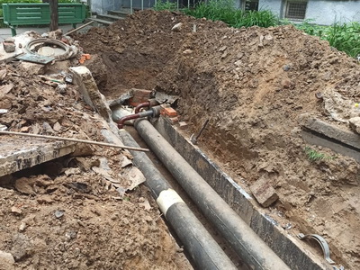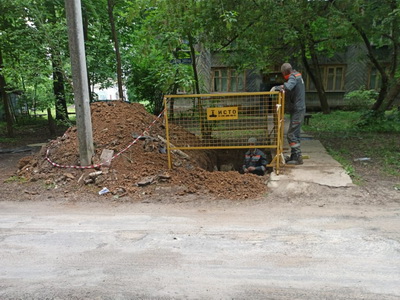 После проведения опрессовки и выявления порывов сотрудники МП «Теплоснабжение» выполняют ремонтные работы на теплосетях города.