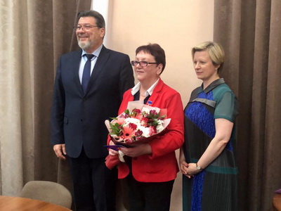 В честь 65-летия Обнинска была учреждена медаль за значительный вклад в развитие города. Татьяна Леонова вручила её представителям ИАТЭ: