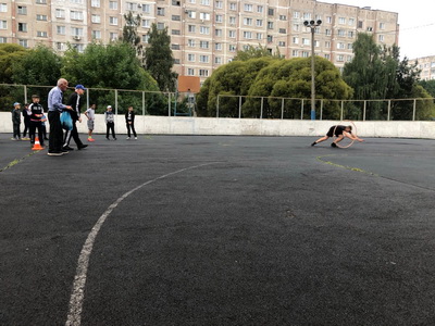 Всего в проекте «Спорт в моем дворе» задействованы 4 площадки по городу. Одна из них — на ул. Калужской , д.1. Здесь были организованы «Веселые старты», в ходе которых мальчики и девочки «ползали по-пластунски», поражали «пулеметное гнездо», бегали на скорость. Проведение соревнований обеспечили тренеры Спортивного клуба «Квант».