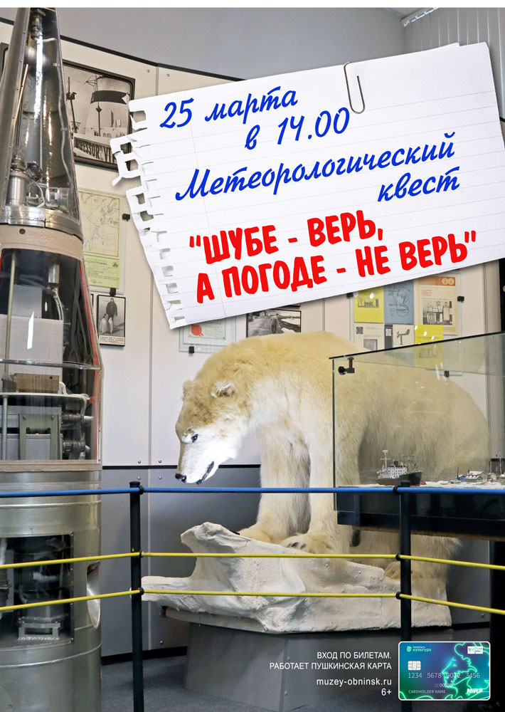 25 марта в 14:00 в Музее истории города состоится метеорологический квест «Шубе – верь, а погоде – не верь» (6+), посвященный Всемирному дню метеоролога.