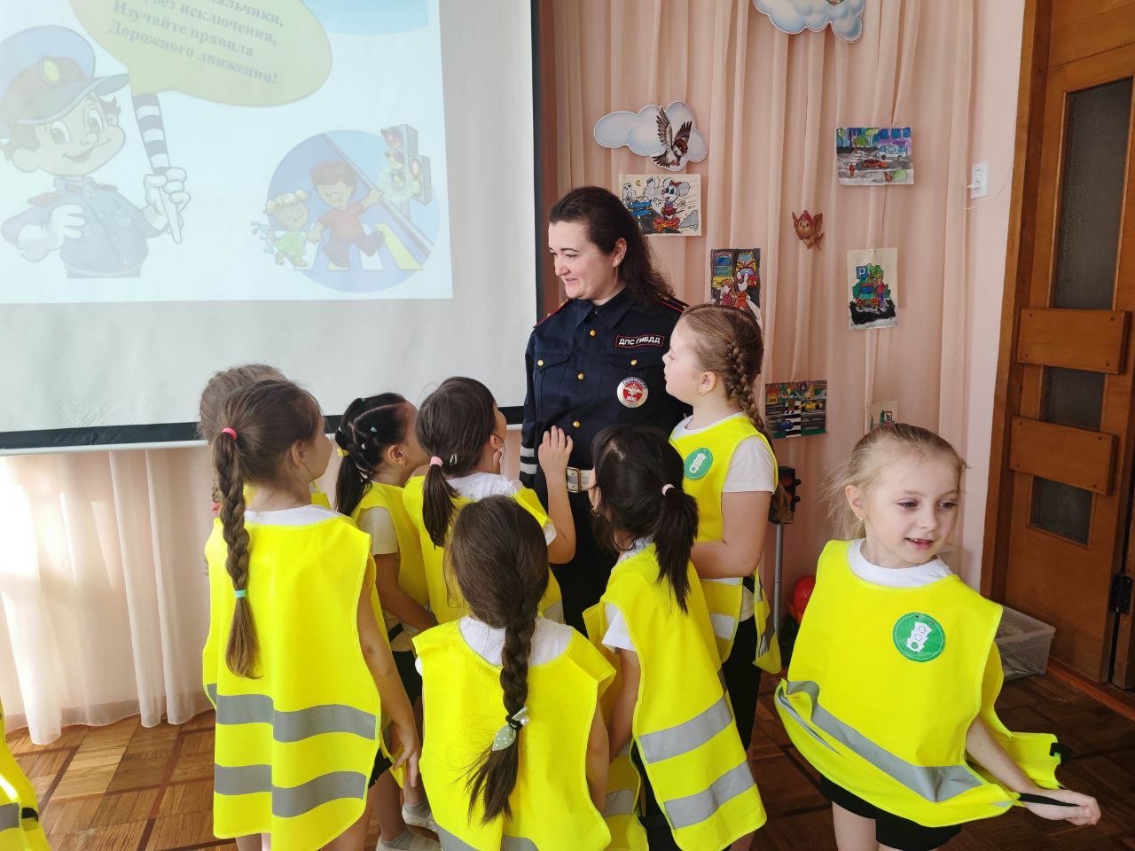 Сегодняшние дошколята уже в этом году станут школьниками и многим из них придется самостоятельно добираться до школы. Чтобы дети безопасно переходили проезжую часть дороги, знали об опасностях на дороге и соблюдали правила дорожного движения- воспитатели подготовили для них встречу с инспектором ДПС ОГИБДД Изабеллой Бабаевой.