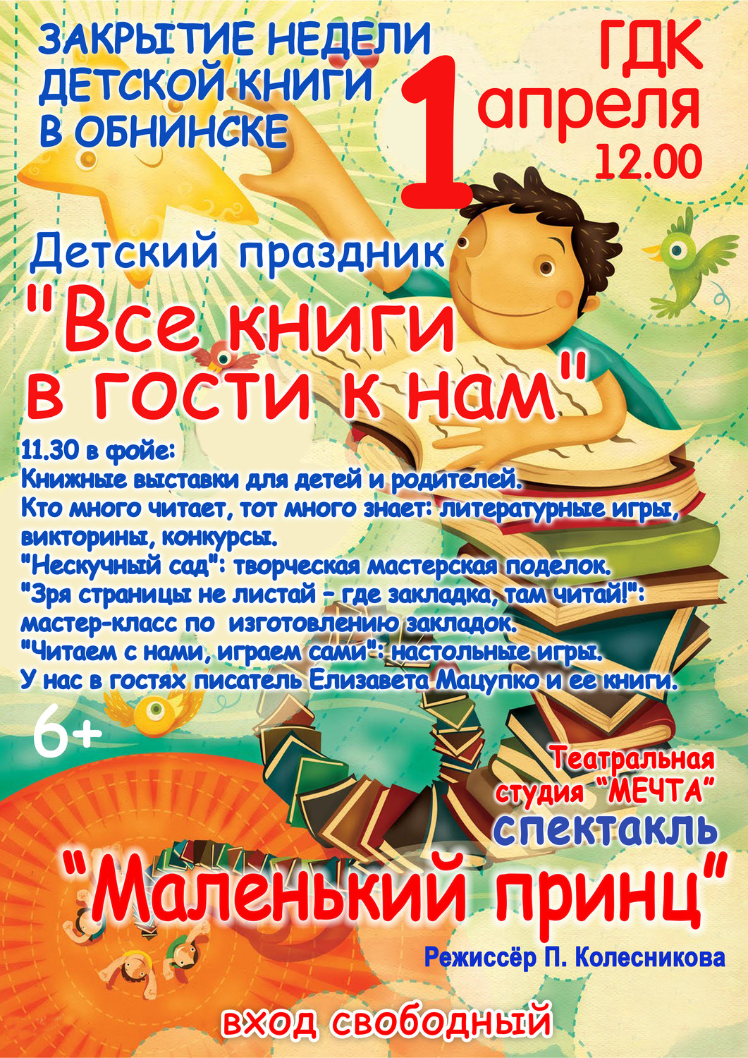 1 апреля приглашаем всех в Городской дворец культуры на закрытие Недели детской книги «Все книги в гости к нам».