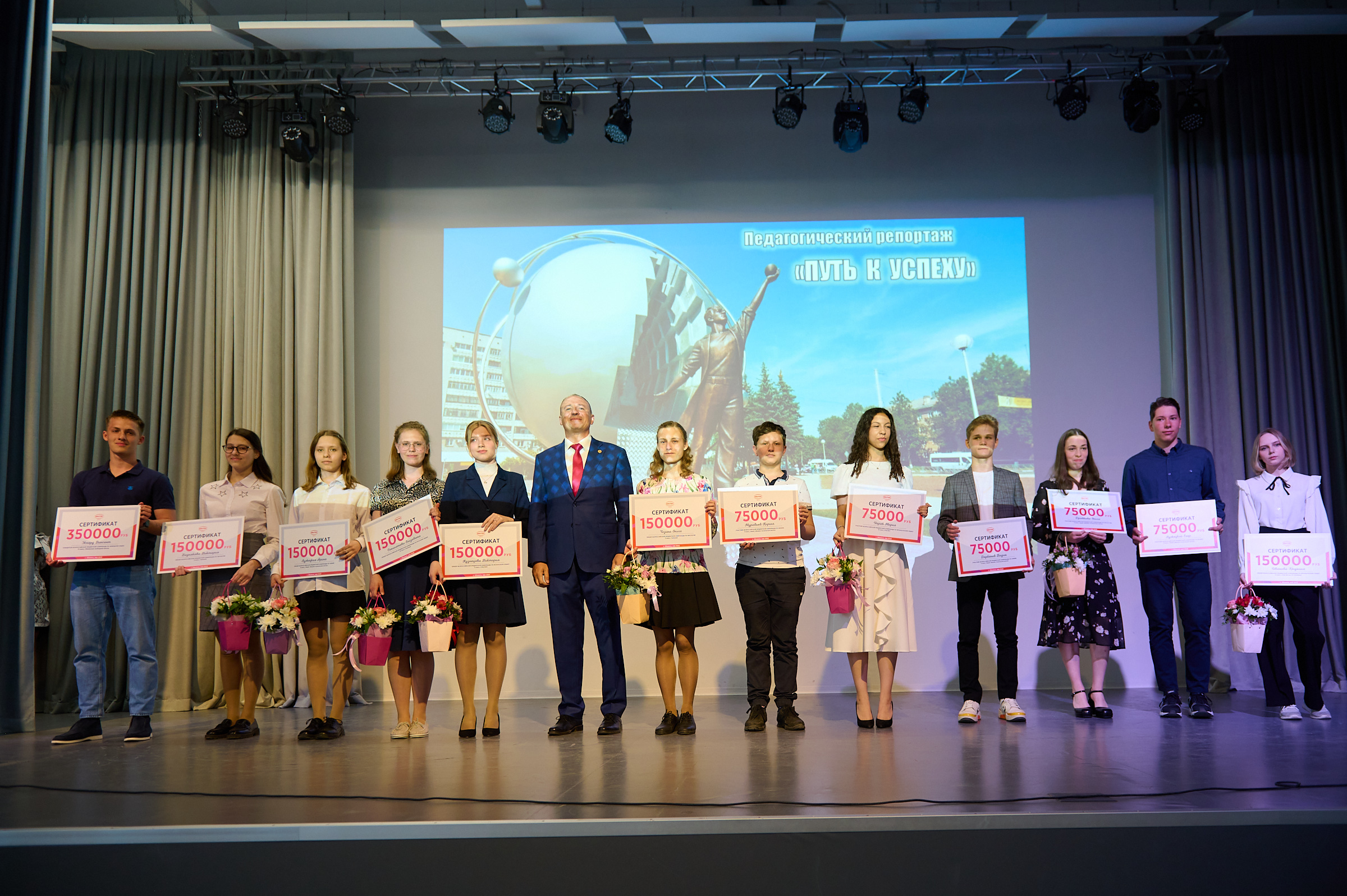 С приветственный словом обратился Глава городского самоуправления, председатель Обнинского городского собрания Геннадий Артемьев: «Сегодня мы собрались, чтобы подвести итоги учебного года и поздравить участников, призёров, победителей заключительного этапа Всероссийской Олимпиады школьников. Обнинск стал снова первым. В этом году город представляло 12 учащихся, 7 из них стали призёрами и победителями. За каждый успехом ученика стоит учитель. Спасибо педагогам и наставникам за терпение, мудрость и искреннюю любовь к детям».