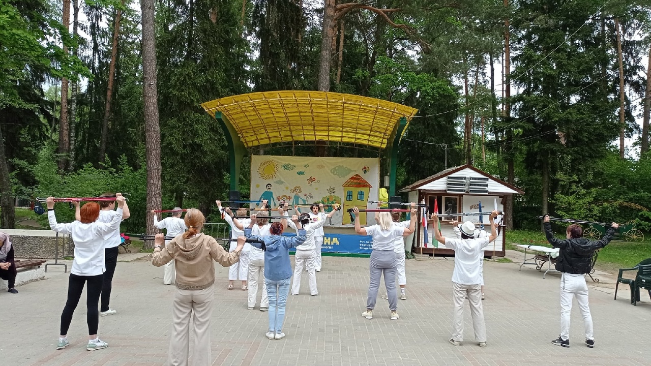 C показательными танцевальными номерами выступили участники групп Северной ходьбы «Гармония» (парк старого города) и «Шаг вперёд» (парк «Усадьба Белкино»).