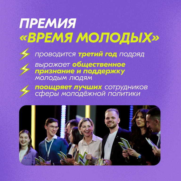 Премия создана для поощрения лидеров, организаций, сотрудников, руководителей и команд в сфере молодёжной политики, коммерческих организаций, молодёжных СМИ, блогеров, чья деятельность ориентирована на молодых.