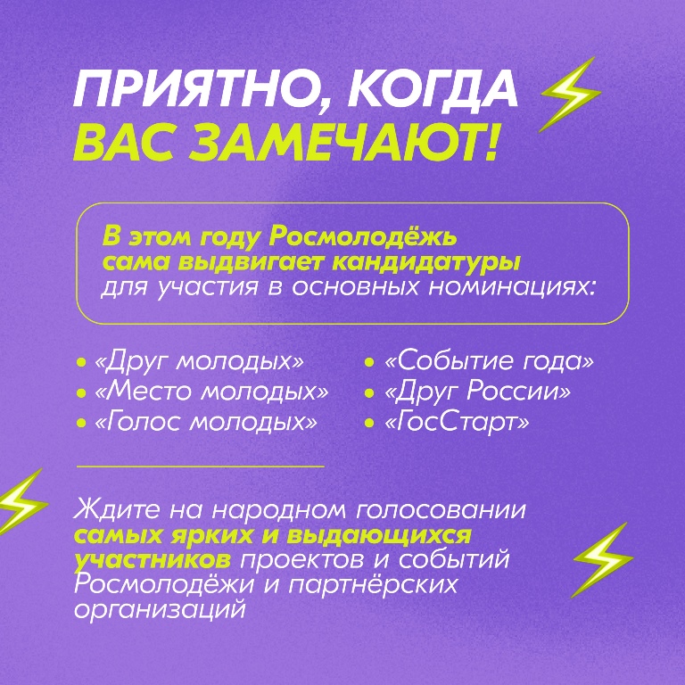 - «Друг молодых» (для коммерческих компаний, которые участвуют в реализации молодёжной политики),